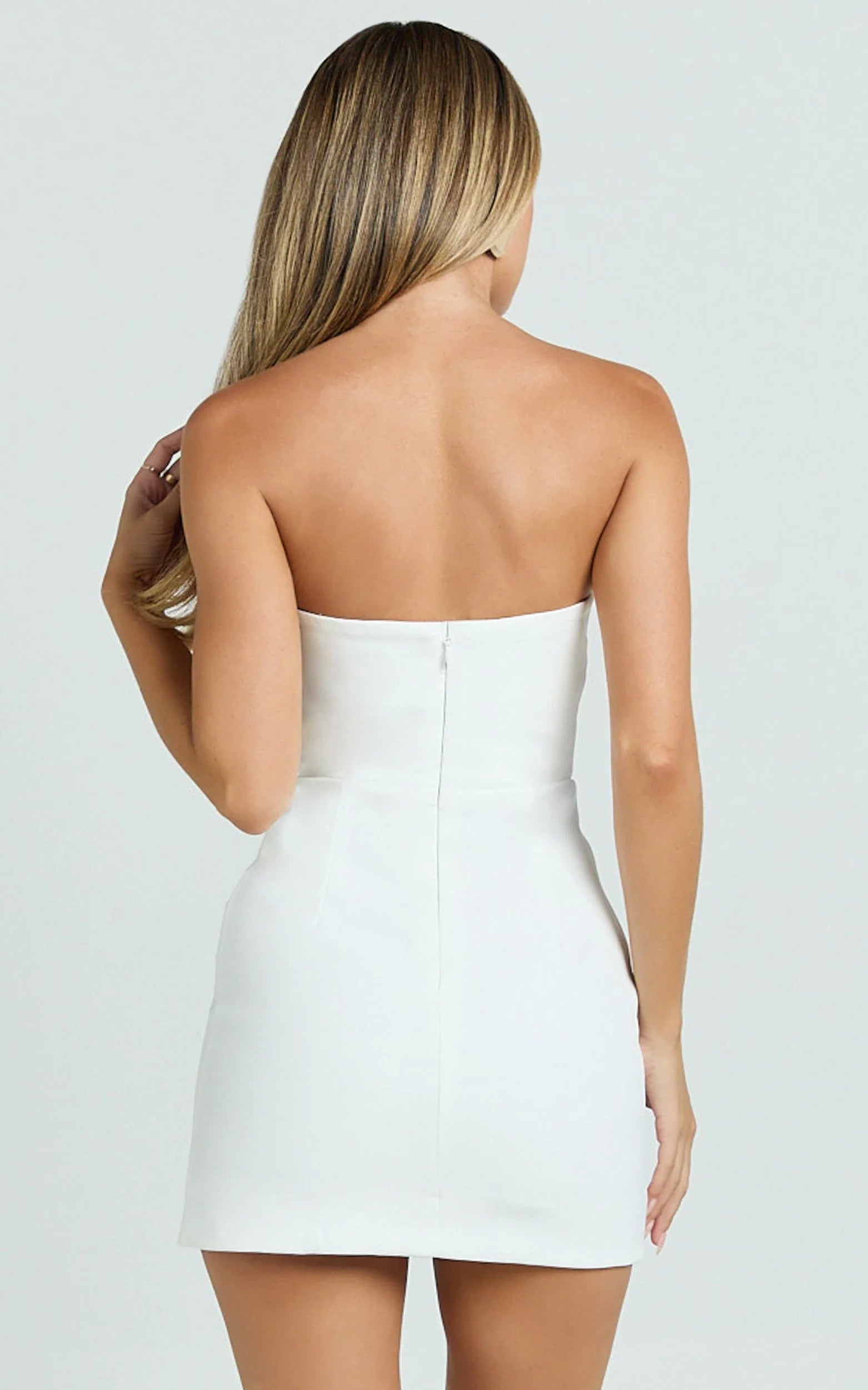 Adora Mini Dress - Strapless Bow Detail Split Dress In White nails fresh-it-girl polish with a body-skimming fit and leg-lengthening hem. Keep the vibe sleek with ankle boots for an elevated edge, or lean into soft romance with lace accents in your accessories. Add a glossy lip and you’re set, simple, striking, unforgettable.