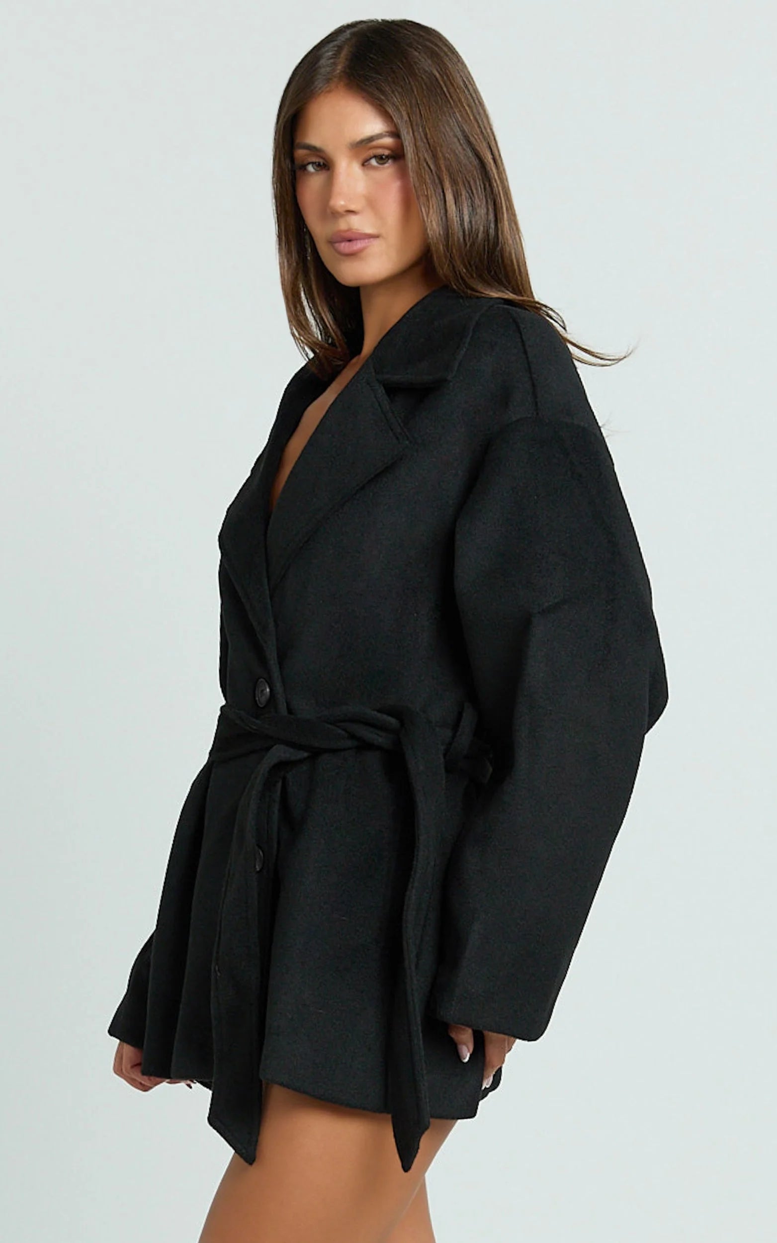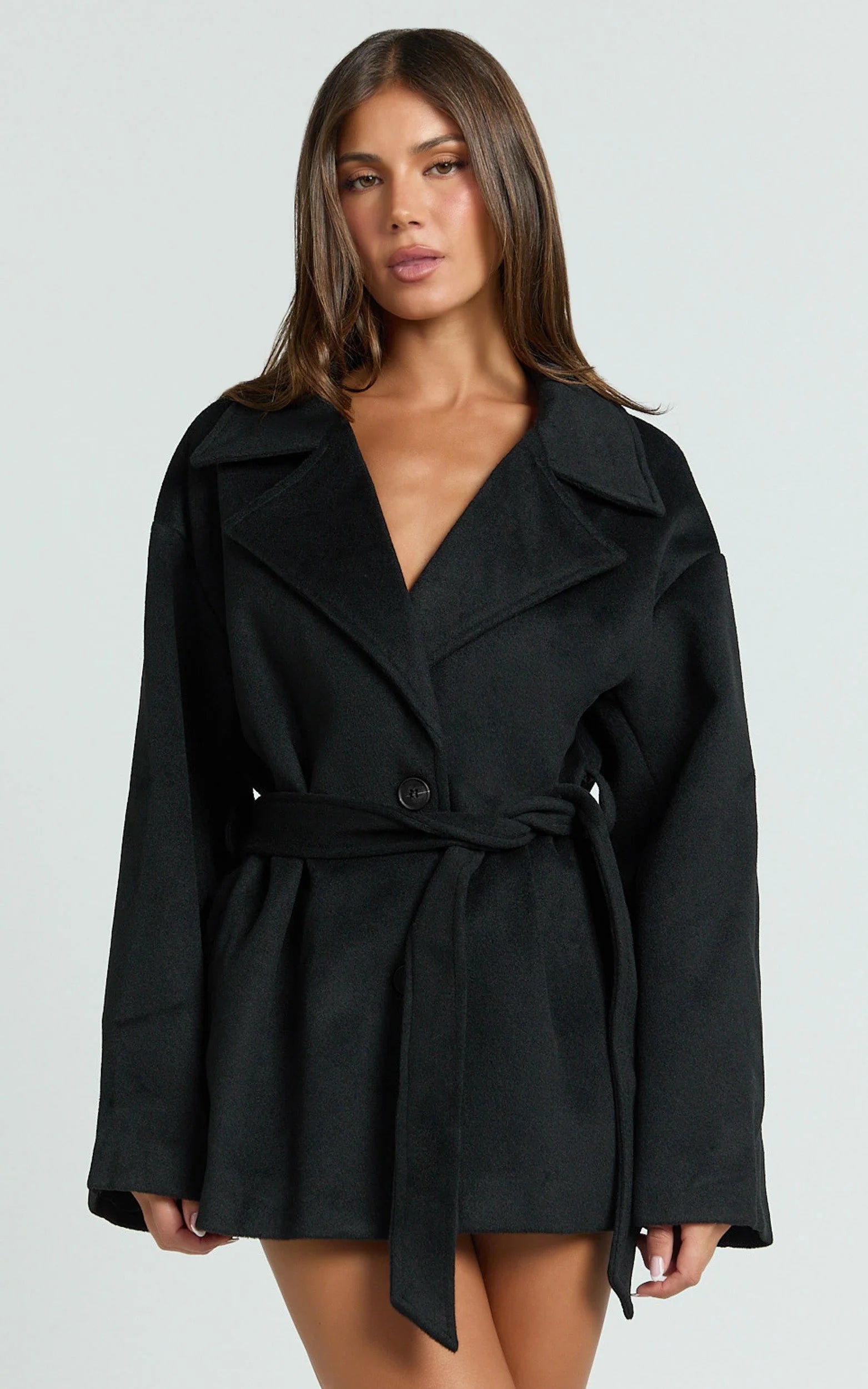 Alessandra Coat brings effortless structure without the bulk, cinch it for definition or wear it open for laid-back drape. A high shine moment? Add metallic sunglasses and let the minimalist design do the talking. A forever layer that pulls looks together fast, it’s the black coat you’ll reach for on repeat.