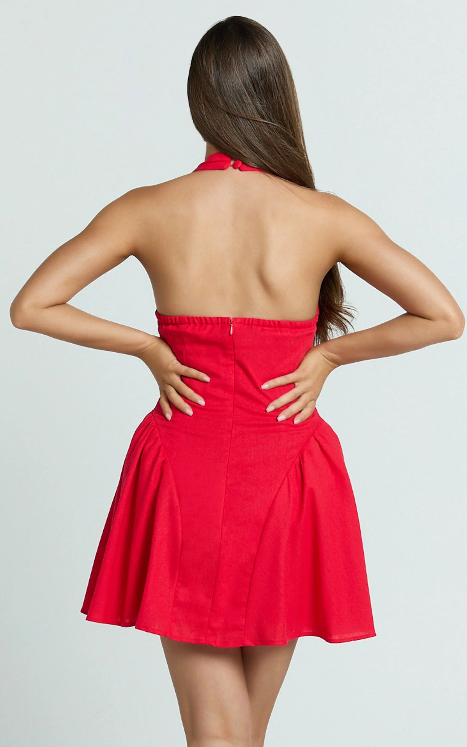 The halter deep V neckline and fit-and-flare silhouette cinch the waist and skim the hips for a confident, dance-floor-ready finish. She’s short, sweet, and made for making an entrance, perfect for birthdays, date nights, and any occasion where Dresses are the main event.