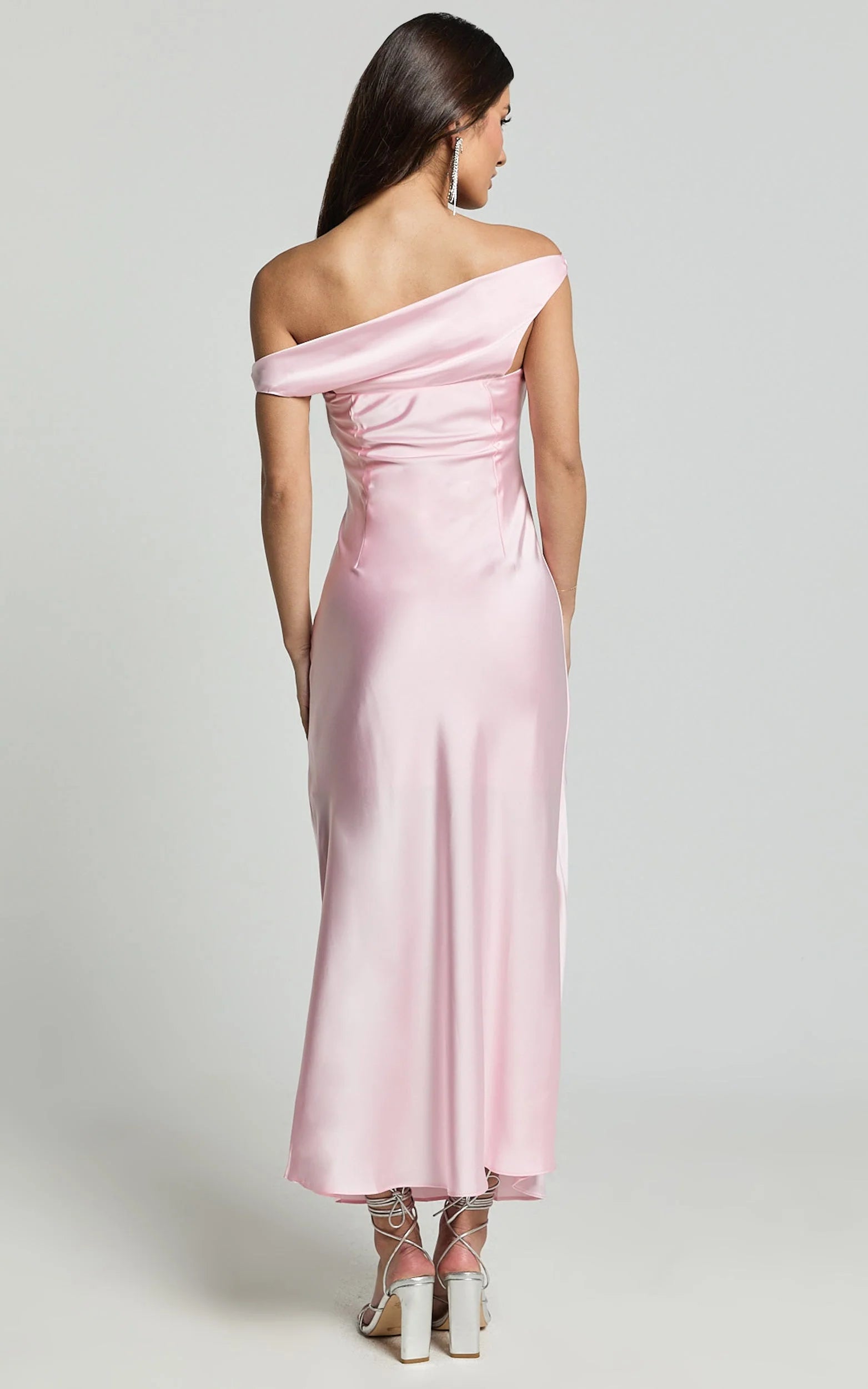 Transform your look with the stunning Alexia Midi Dress - a breath of fresh elegance that blends timeless style with a modern twist. Designed for the discerning woman of today, this one shoulder bust slip dress in soft pink is more than just a piece of clothing; it's a statement of grace and empowerment.