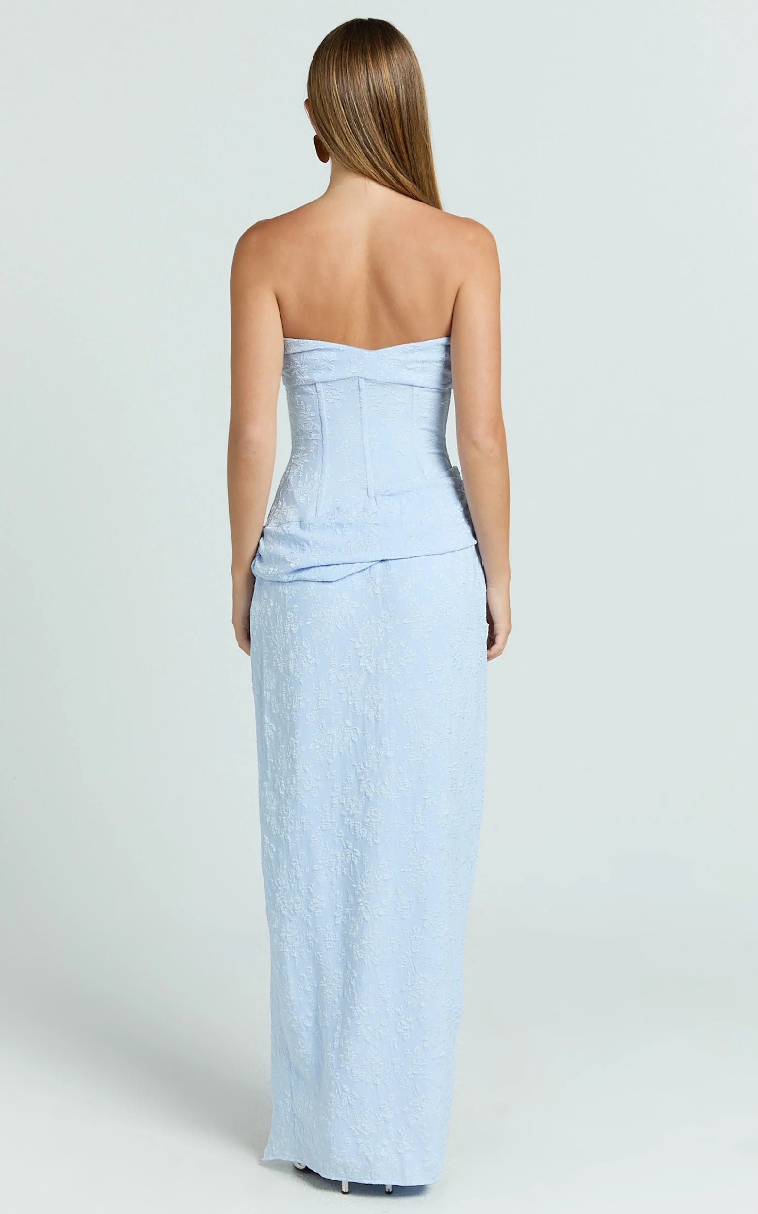 The Berri Maxi Dress in Blue is sleek, sculpting, and ultra-flattering, your effortless plus-one for weddings, long lunches, and nights that call for a little glam. The strapless neckline and high split bring polished elegance with a modern edge, making it a natural match for your favourite heels and a confident stride. Berri is a go-to when the dress code says dress to impress. Keep the styling refined with delicate pendant necklaces and a statement cuff to draw attention upward, or add a playful twist with a raffia or basket bag. The soft blue hue feels fresh for the season and pairs beautifully with neutral or metallic accessories.