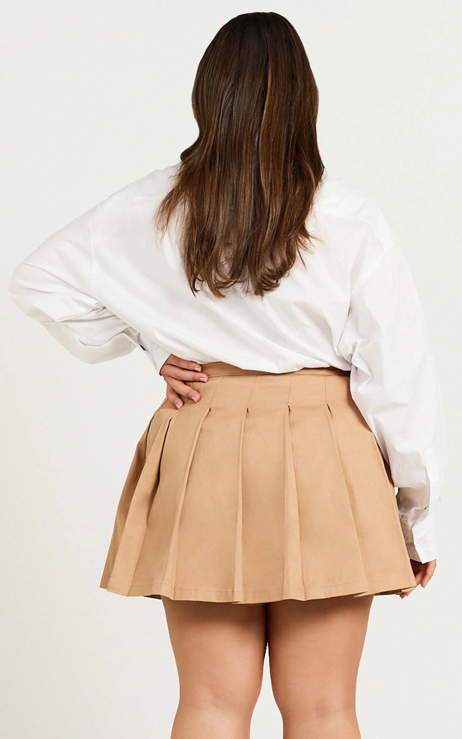 Get ready to turn heads in the Cailin Mini Skirt - a flirty, pleated dream in a versatile beige that's just waiting to be your new go-to. Made from soft, durable cotton twill, this skirt gives you the best of both worlds with its comfortable feel and effortless style. The A-line silhouette flatters every figure, making it a must-have in your wardrobe rotation.