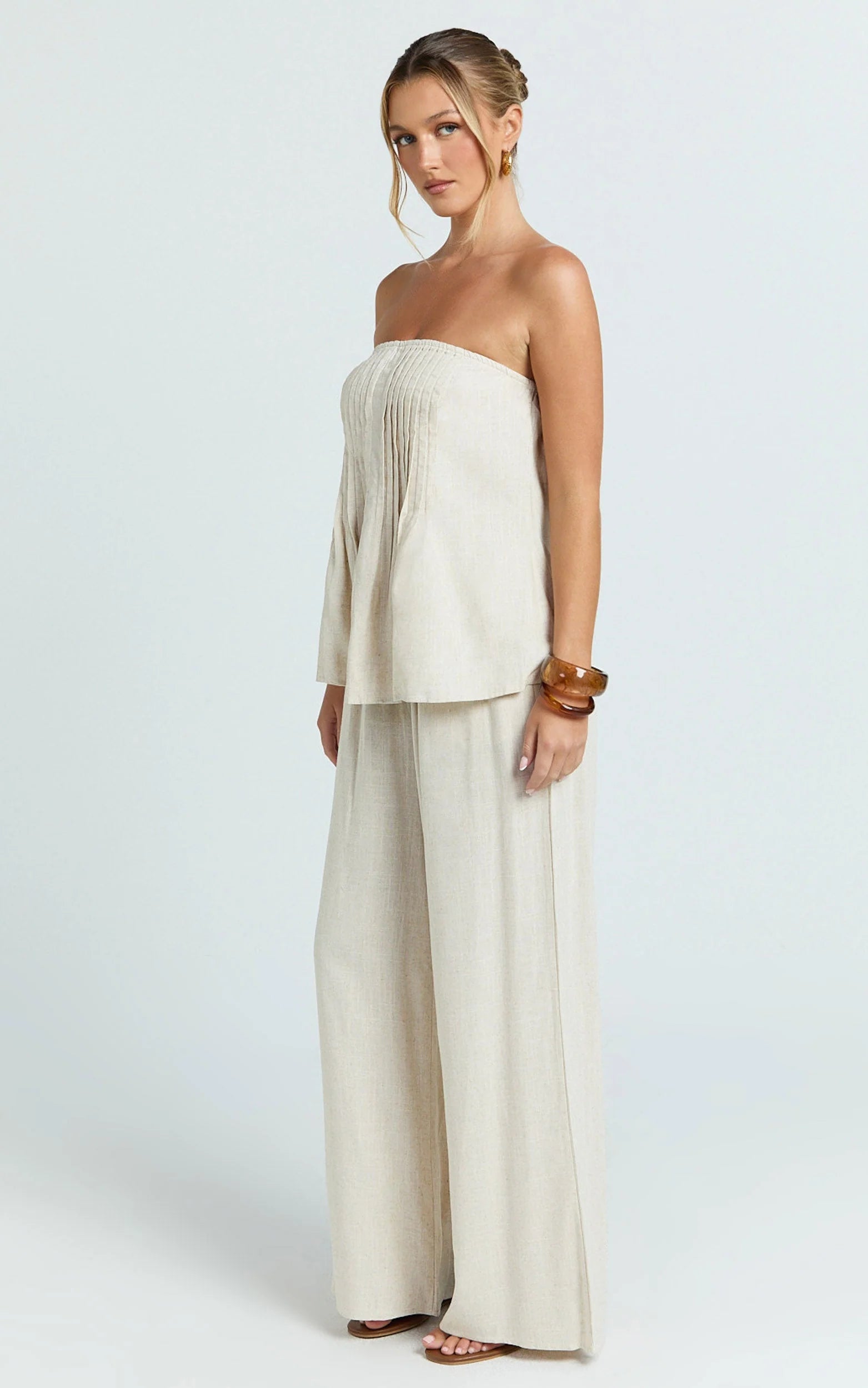 The Carli Two Piece Top and Pants Set in Beige serves minimal energy with maximum payoff, think clean tube top, easy wide-leg pants, so flattering pulled-together. A set that works from coffee catch-ups to late-night plans. The neutral tone keeps it effortlessly chic, while the streamlined silhouette creates that “I woke up like this” vibe. Carli is your grab-and-go outfit formula: mix and match with pieces you already own, or wear the full set for instant impact. Style with a pendant necklace and sleek slides for day, then switch to heels and a sharp blazer layer for after-dark. Want a cool contrast? Tap the sneaker trend to keep it fresh and off-duty. Easy, elevated, and endlessly wearable.