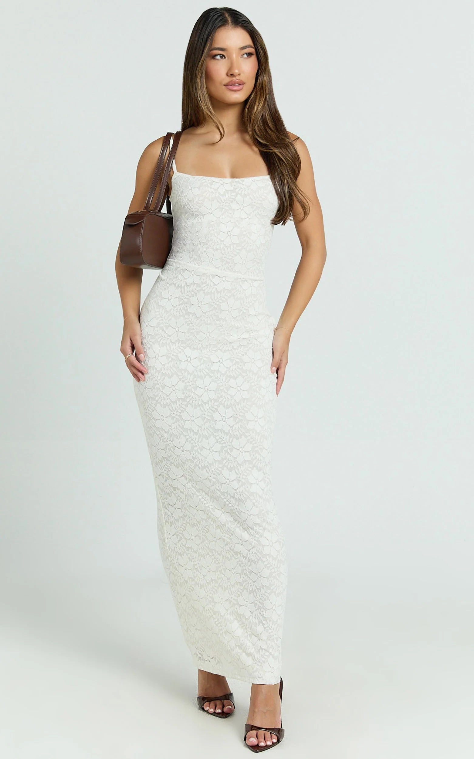 Meet Carly Maxi Dress – Stretch Lace Scoop Neck Dress In Off White. The ankle-grazing length balances the fitted shape for a refined finish, while the clean scoop front and back keep it sleek and photograph-ready. Style with strappy heels and a petite shoulder bag for minimalist fashion energy, or add statement earrings to lean into maximalist dressing. Consider it one of our buzziest items this season, timeless, versatile, and made to stun.