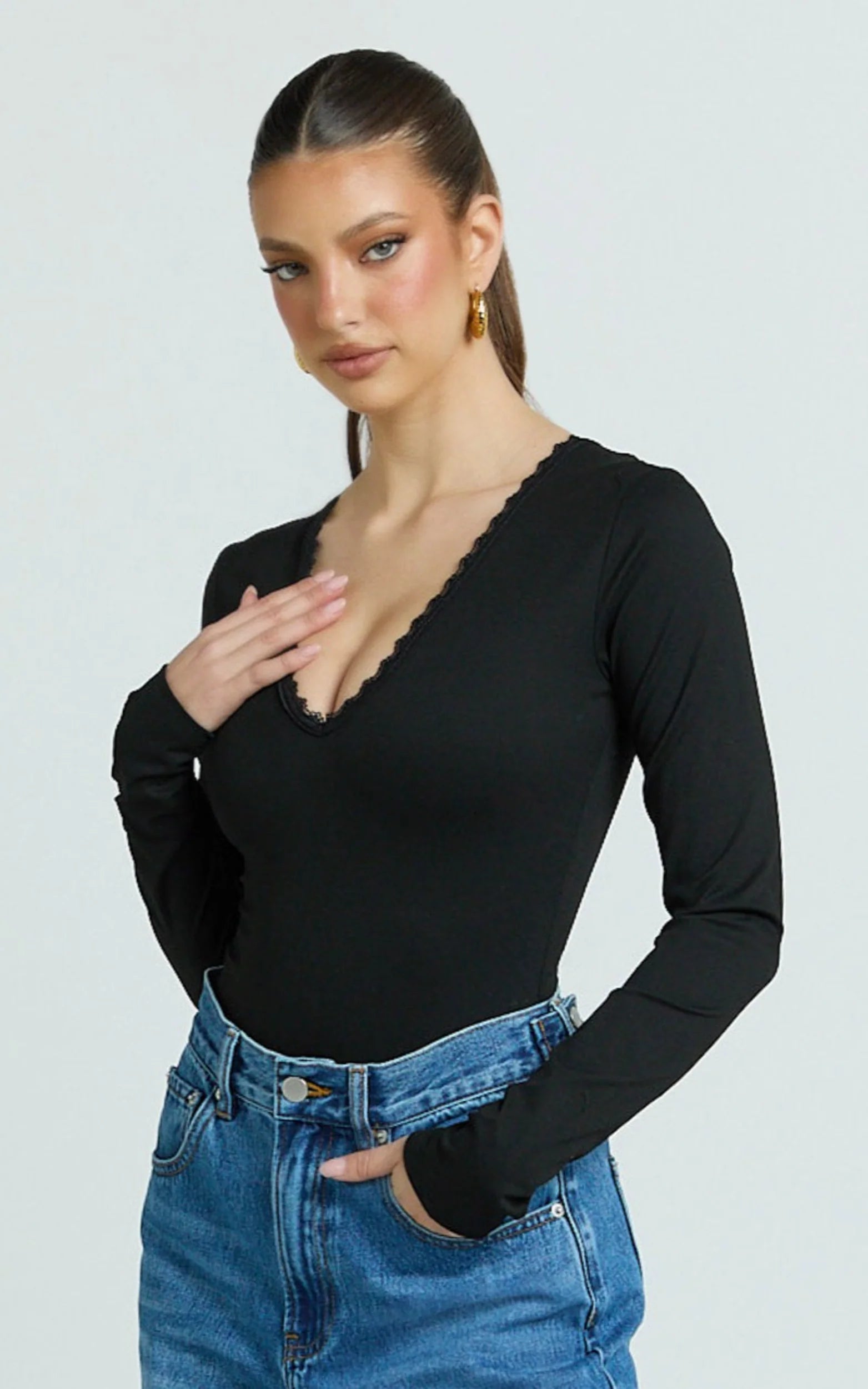 Cassie Bodysuit delivers sleek after-dark energy that pairs seamlessly with current trends, think sheer skirts for a subtle reveal and a hint of high shine to dial up the glam. Style it your way from cocktails to club nights; the curve-hugging silhouette keeps everything polished while the lace detail does the flirting for you.