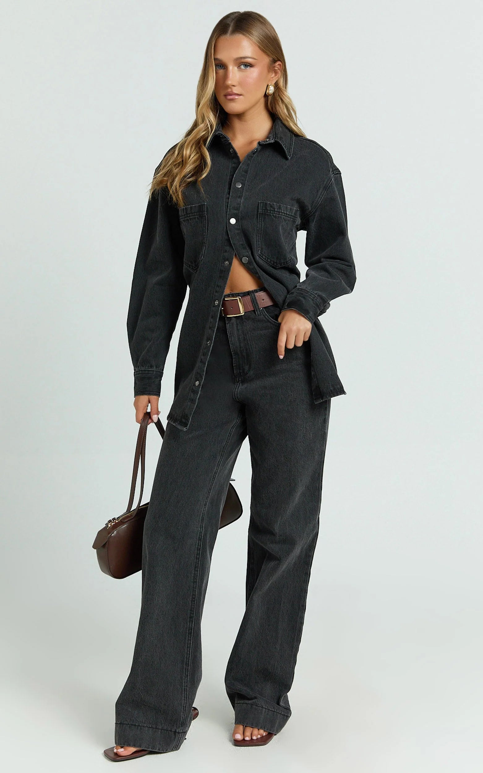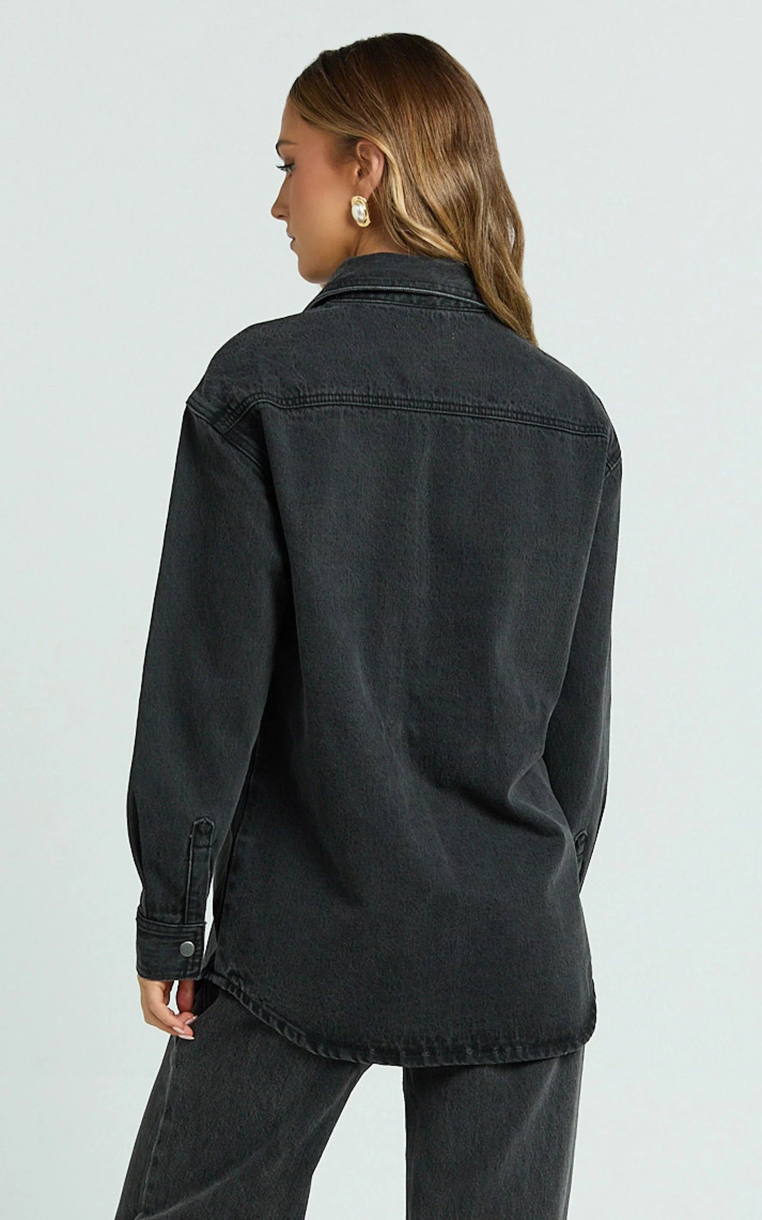 Level up your casual looks with the Faharra Shirt - Recycled Cotton Denim Shirt in Black. This ultra-cool, long sleeve top is crafted from recycled cotton, making it a perfect choice for eco-conscious fashion lovers. Featuring a classic collar, longline silhouette and on-trend black denim finish, it’s your new go-to for effortless weekend activities or styled-up work-from-home days.