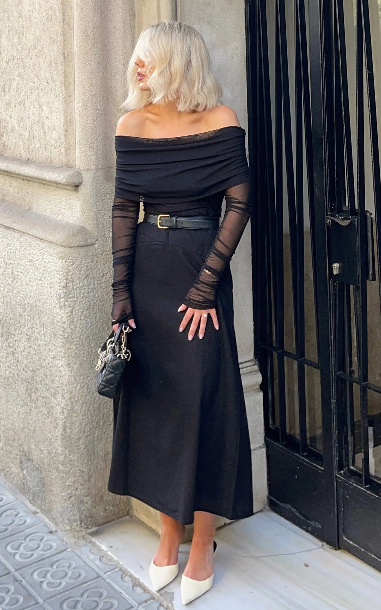 The Jaythen Bodysuit in Black features an off-the-shoulder neckline and ruched mesh sleeves for a sleek, subtly Y2K moment that still reads polished and chic. The fitted silhouette makes it a standout for nights out and dress-to-impress plans, giving just the right amount of drama without feeling overdone. Style it with high-waisted faux leather pants and strappy heels for an effortless going-out look, or switch to a mini skirt and an oversized blazer for daytime polish. Versatile, glam, and made to repeat-wear, Jaythen is the statement top you’ll be glad you grabbed.