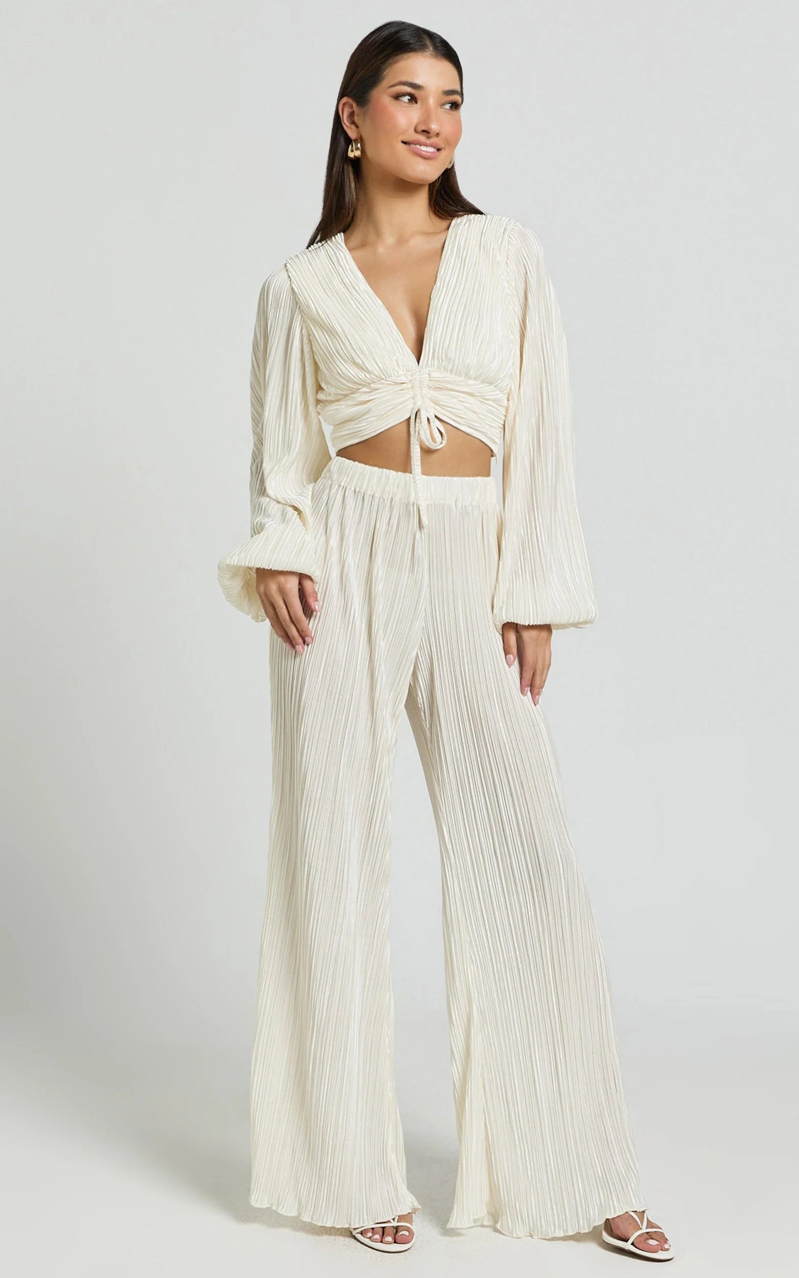 Make a statement with the Jondra Blouse - a stunning and versatile piece that will effortlessly elevate your wardrobe. Crafted from luxurious polyester, this cream blouse features a ruched front detail and plisse texture for added visual interest. With its V-neckline and long sleeves, it strikes the perfect balance between casual and party-ready, making it an ideal choice for any occasion. Whether you're dressing up for a night out or styling it with jeans for a stylish yet comfortable autumn look, this Jondra Blouse is sure to become your new go-to staple.
