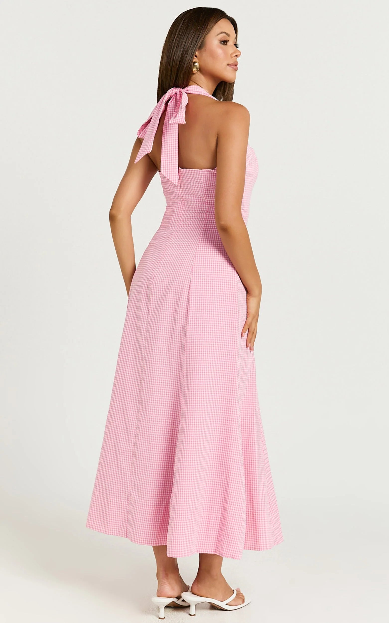 Transform your look with the Narissa Midi Dress, a stunning embodiment of style and comfort, perfectly tailored for the fashionable and empowered woman. This pink gingham halter A-line dress is not just a piece of clothing, but a statement of confidence and grace. Designed for those who embrace every moment, from spontaneous party days to memorable afternoons with friends, the Narissa Midi Dress is a versatile must-have in your wardrobe.