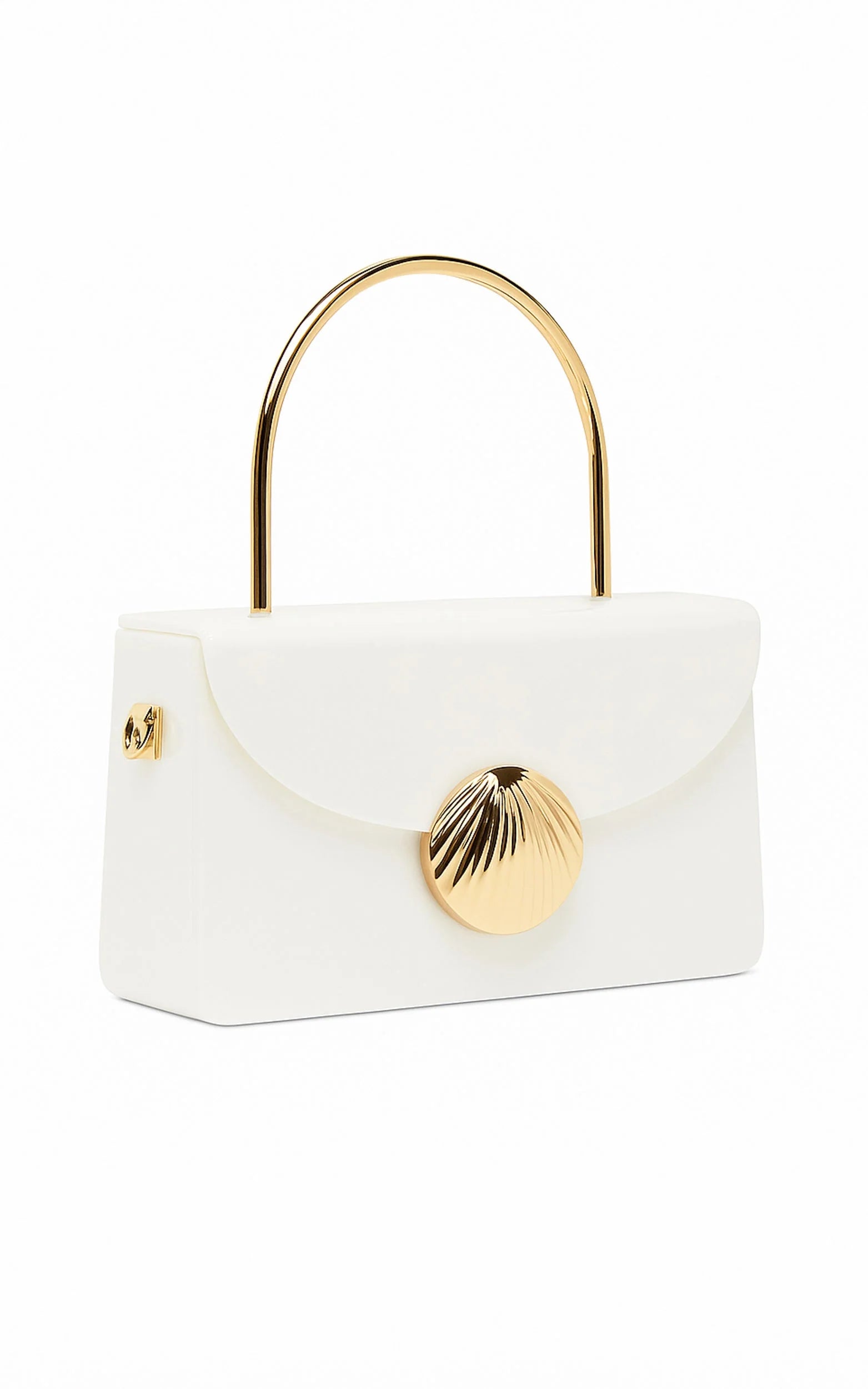 This petite piece doubles as an elegant clutch bag, delivering polished polish for weddings, date nights and everything after-dark. The structured shell silhouette and glossy pearl finish serve Statement Accessories energy, minimal effort, maximum impact, while the top handle makes it easy to tote from cocktails to car-to-curb.
