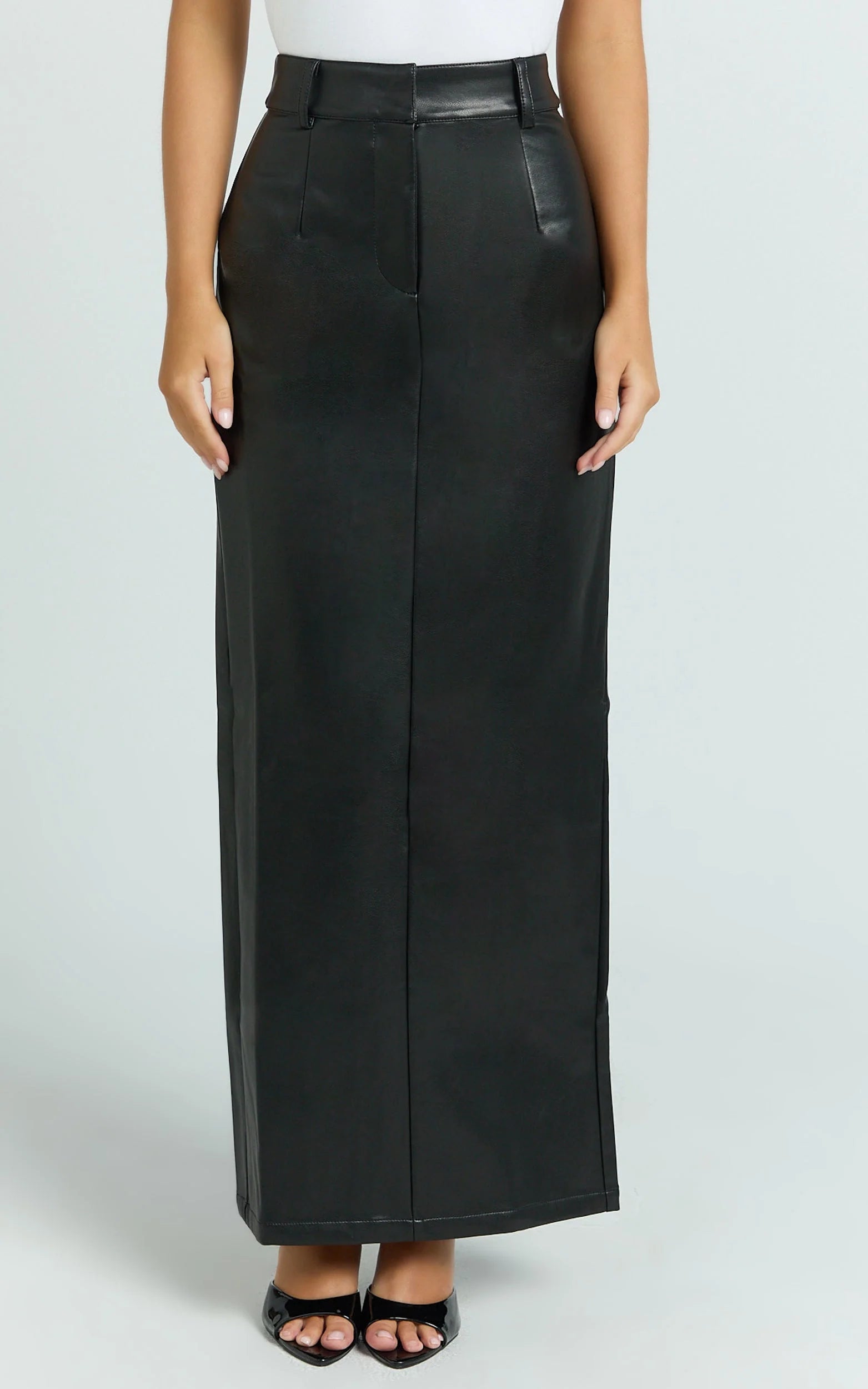 The Raiza Maxi Skirt is glossy, chic, and made for a little drama. With its high waist and figure-hugging cut, it skims your curves before flowing into that sleek full-length finish - so simple, but so striking. The black PU fabric has that luxe shine that instantly dresses up anything you throw on with it.