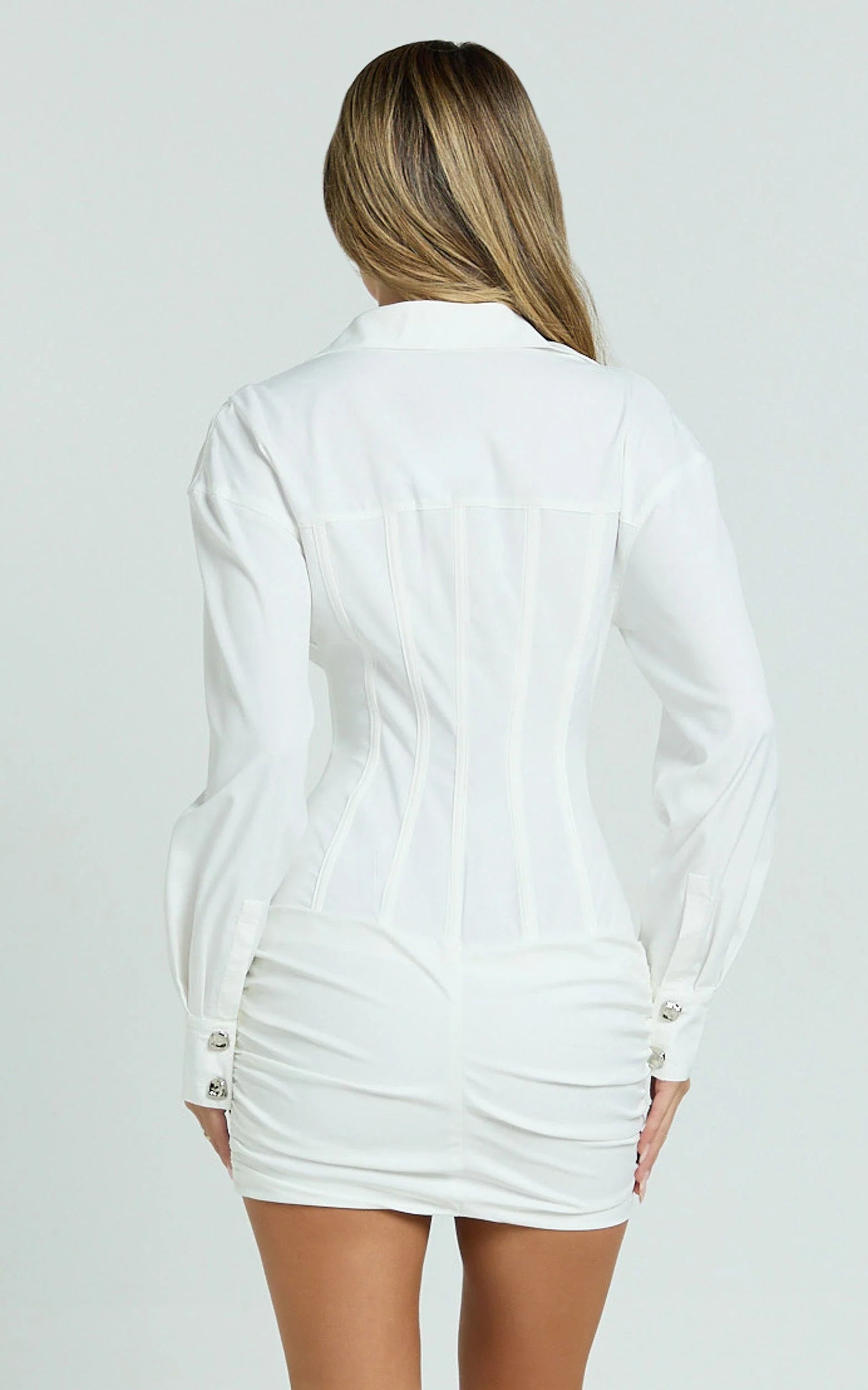 Rhylee Mini Dress is made for trend play: pair with Mesh Flats for a light, on-the-go feel or add Metallic Sunglasses to amp the shine and take it street-luxe. The contoured fit hugs in all the right places, the mini length shows off legs, and the shirt details keep it sophisticated. Wear solo for a statement or layer with your favourite pieces, this white mini is the wardrobe reset you’ll reach for on repeat.