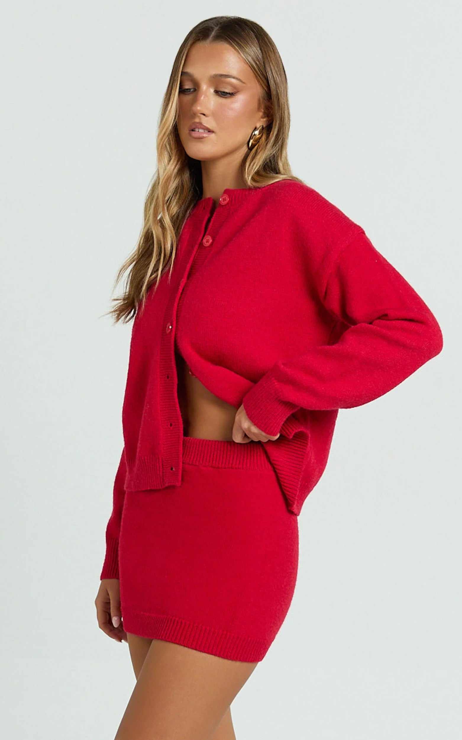 This mini sits high on the waist with a body-hugging knit that smooths and sculpts, flaunting legs-for-days energy. The bold Red hue delivers instant wow, while the clean, minimal silhouette keeps it versatile, dress it up for nights out or keep it off-duty cool. Think flirty, fitted, and endlessly repeatable.