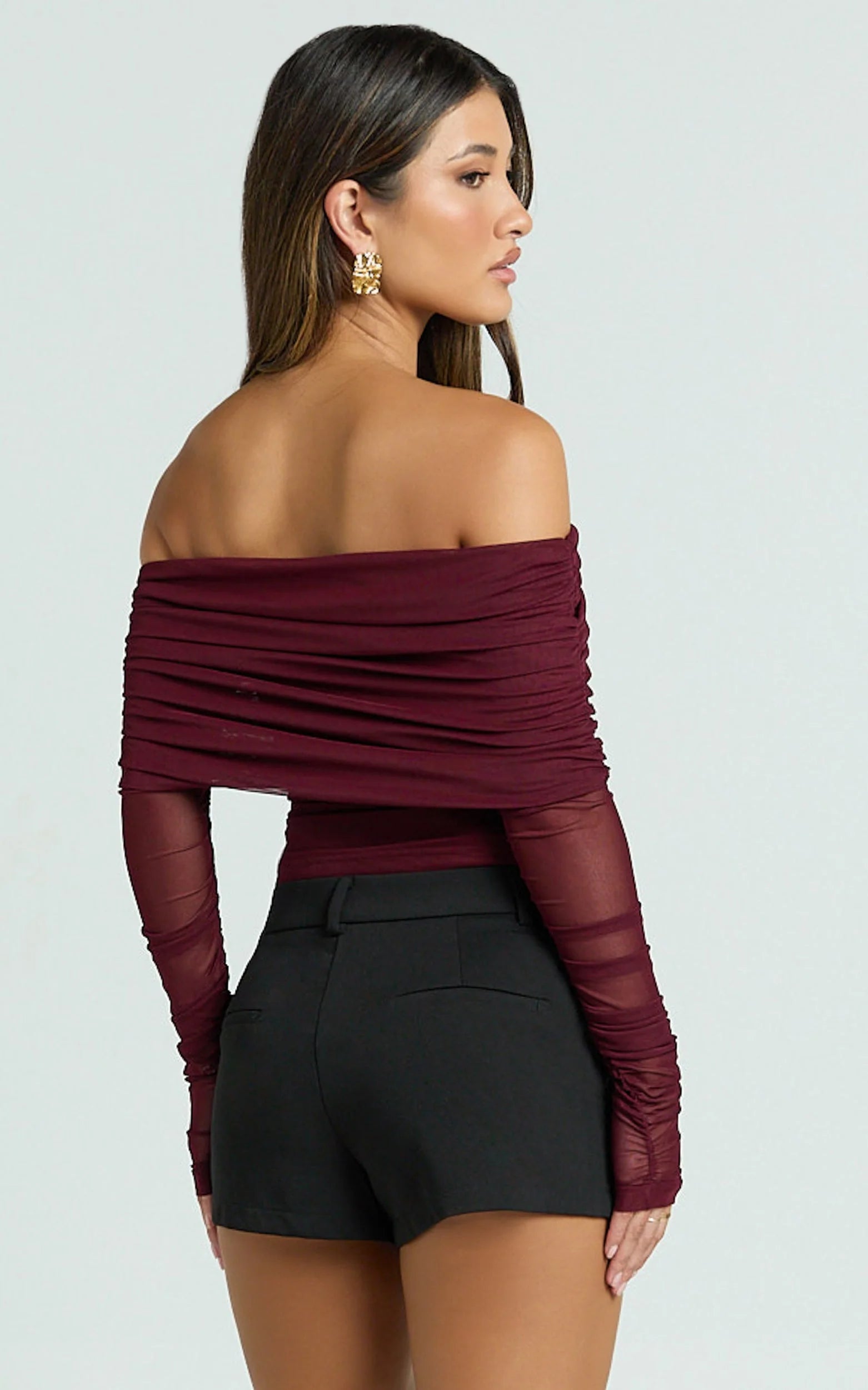 Roza Top nails that sculpted fit with a smooth, streamlined finish that tucks cleanly into high-waist bottoms. Dress it up with tailored pants and bold accessories, or keep it cool with denim and strappy heels. Confident, versatile, and so easy to wear—Roza Top - Asymmetric Long Sleeve One Shoulder Top In Wine is your go-to when the invite calls for effortless polish.